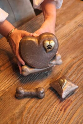 Natuurlijk vind ik het ook belangrijk om huisdieren een plekje te geven in de winkel. Hier vind je dan ook een met zorg samengestelde collectie van urnen.